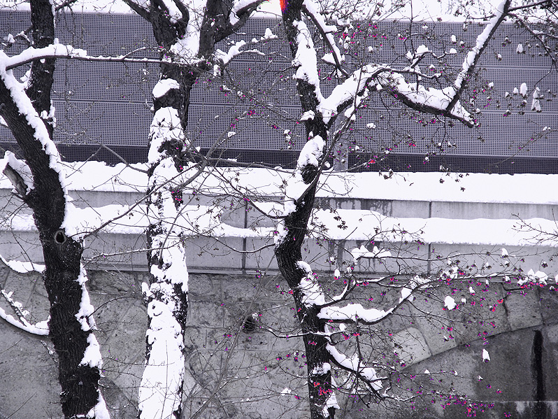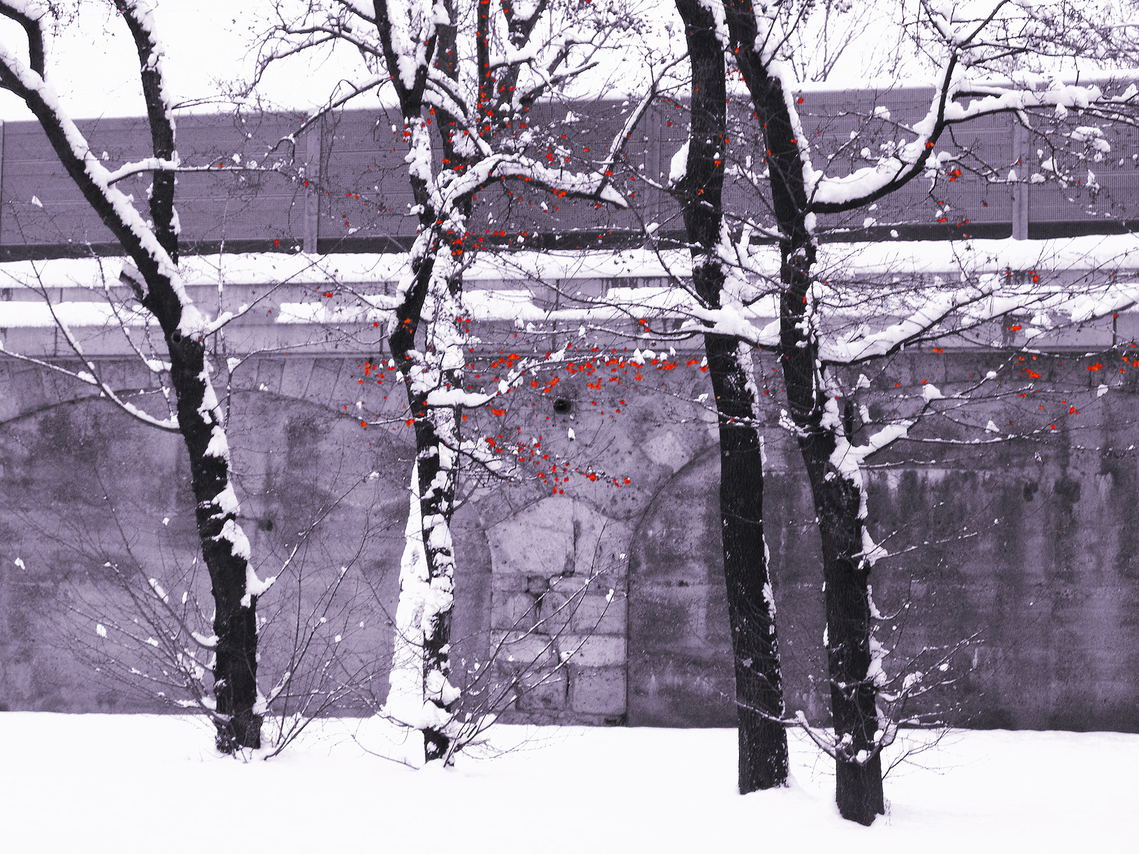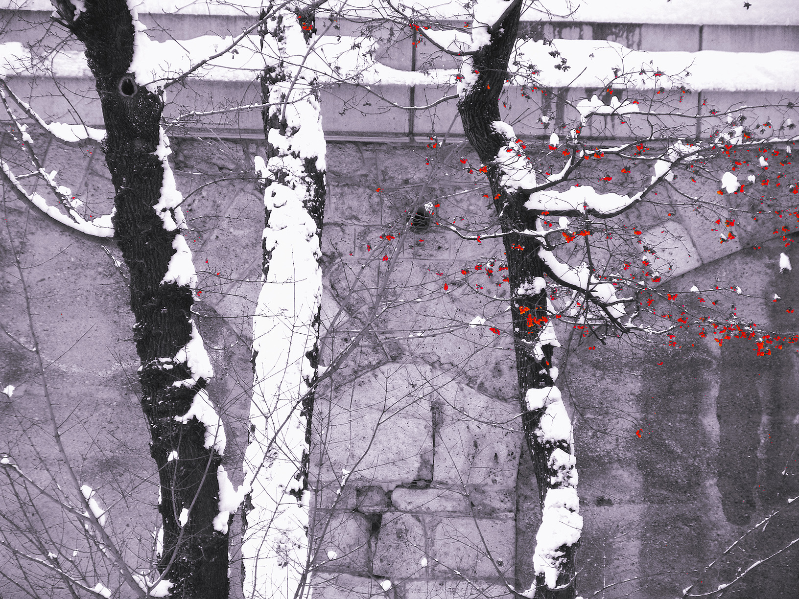 (Symbolfoto. Die aktuellen weißen Weihnachten könnten in Details davon abweichen. Sie tun es sogar bestimmt, denn die Schönheit dieser Bäume, die Hokusai-samma zu einer Serie von spontanen Holzschnitt-Schnappschüssen zu bewegen geeignet gewesen wäre, ist längst der Geldgier und Zerstörungswut der "Baumpfleger" zum Opfer gefallen. (Bäume dürfen nun keine Zweige mehr an ihrem Stamm haben, und schon gar nicht am Fuß desselben. Und auch oben wird weggeschnitten, was irgendwie wegsteht oder überhängt oder so aussieht, als könnte es in 10 Jahren herunterfallen. Das ist wohl "Klimaschutz", auf irgendeine verworrene Weise (auf dem Umweg über Biomassekraftwerke, vielleicht, oder über 5G / "Digitalisierung").))