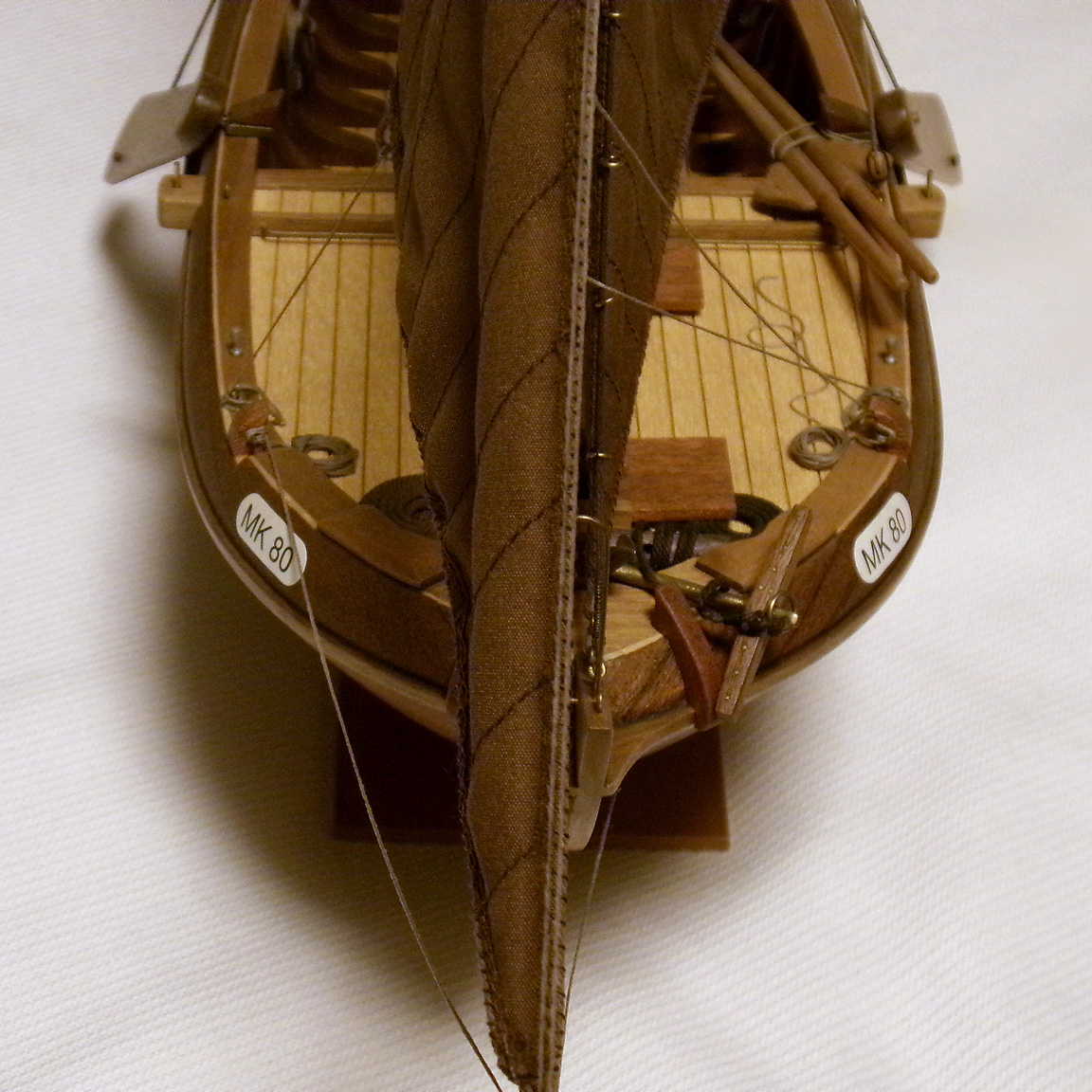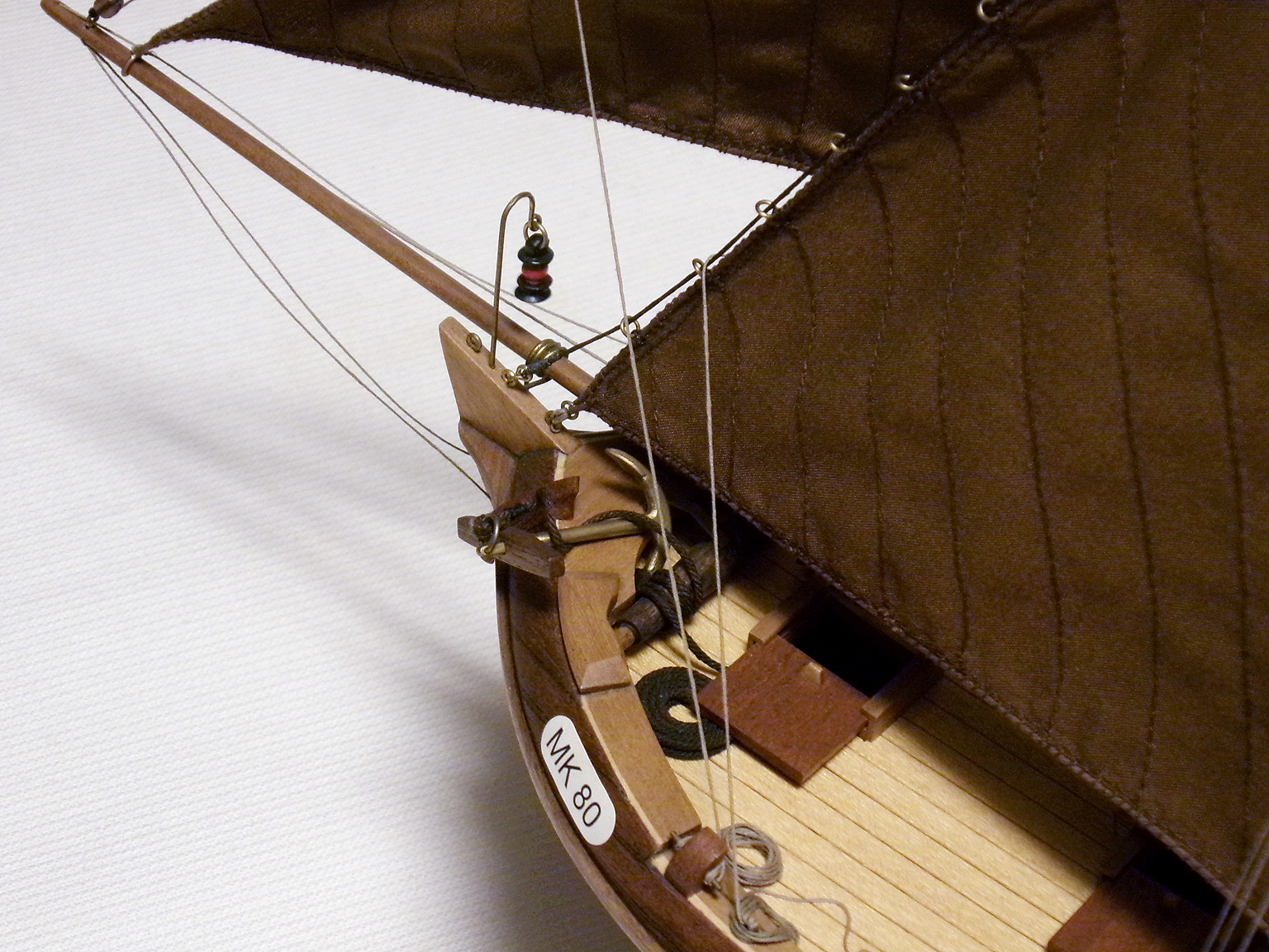 Auch hier die Segel aus neuem Stoff, neu genäht. Blöcke neu, Anker neu (ebenfalls auf diesen älteren Fotos noch nicht eingesetzt (Anker #4).